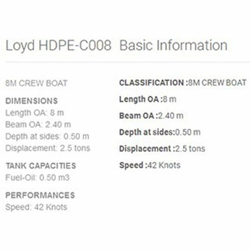 | 總長: | 8m | 航速: | 42kn |